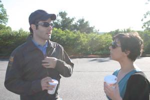 Matthew G. Rashid talks with actress Julie Tortorici on location